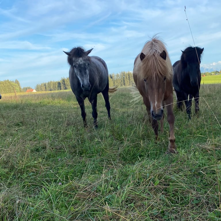 Unsere Pferde werden ausschließlich in Offenstallhaltung mit freiem Koppelzugang in artgerechter Herdenhaltung gehalten. Auf über 5 ha Weideland haben unsere Pferde immer genug Auslauf.